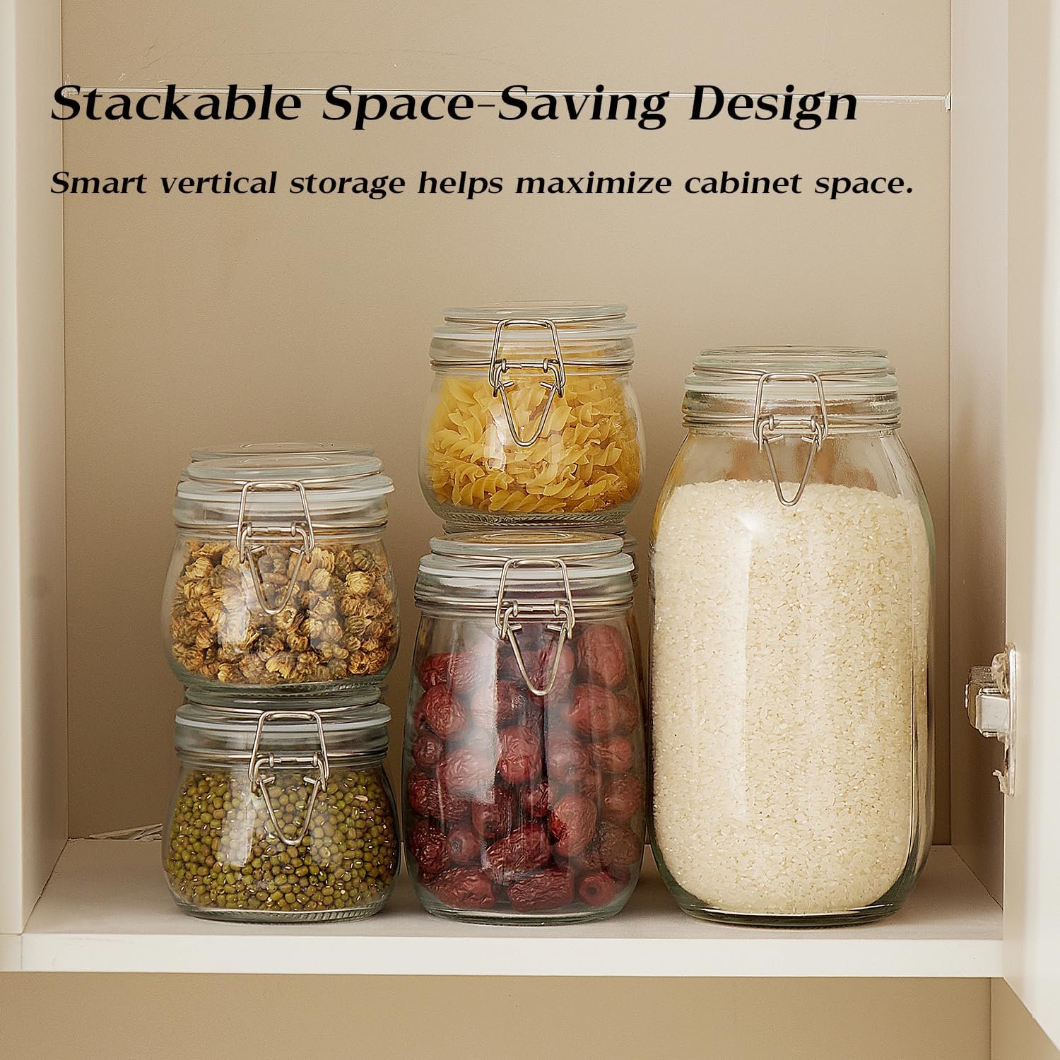 【Premium Glass Jars with Airtight Lids】These airtight glass jars feature a wire clip fastening system with clear preserving seals, locking in freshness and flavor. Ideal for dry goods and long-term food storage.